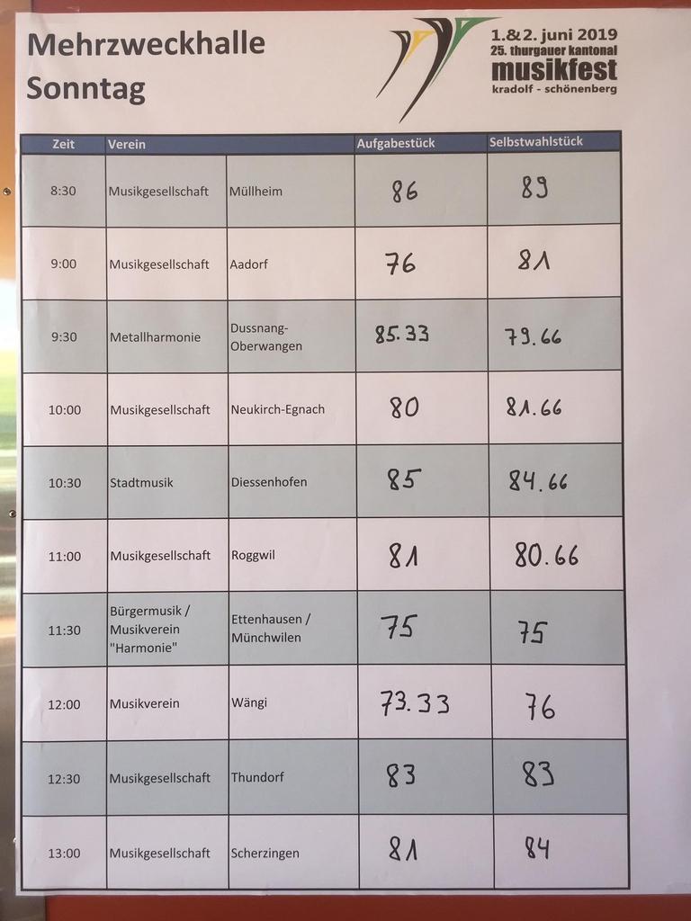 Kantonales Musikfest Kradolf-Schönenberg 2019
