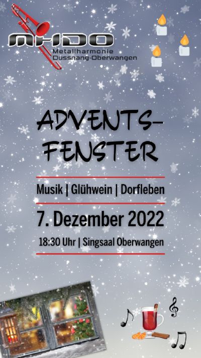 Am 7. Dezember eröffnet die MHDO das Adventsfenster beim Singsaal der Sekundarschule Fischingen.Dazu weihnachtliche Klänge gespielt von der MHDO.
